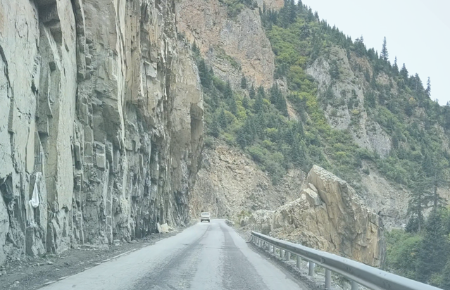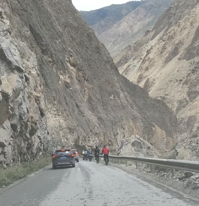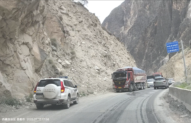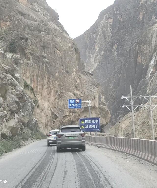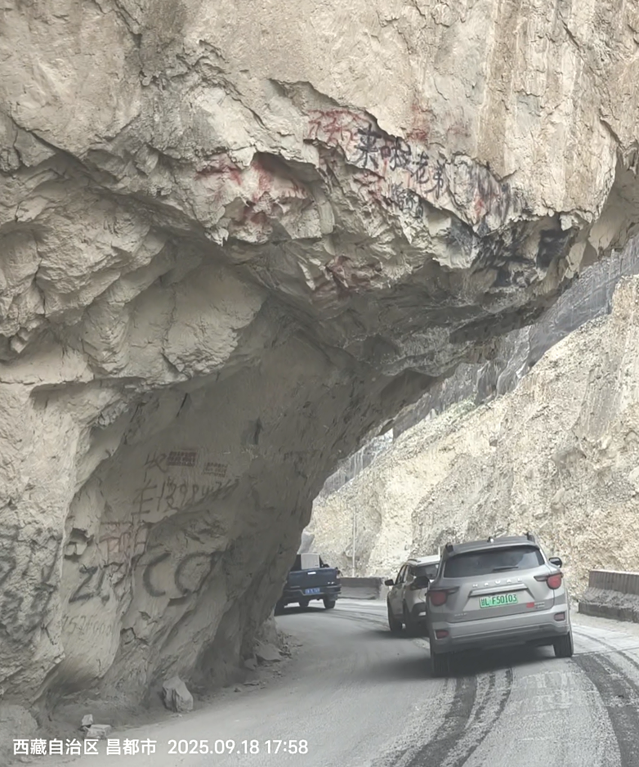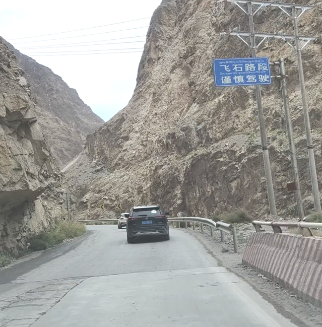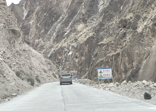 依旧是落石路段,我们快速通过。