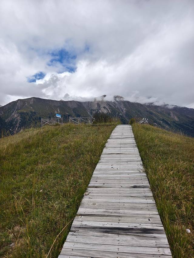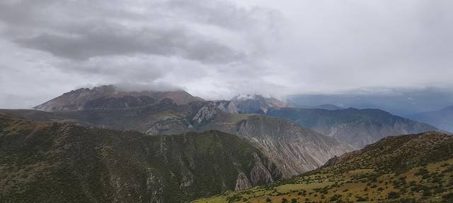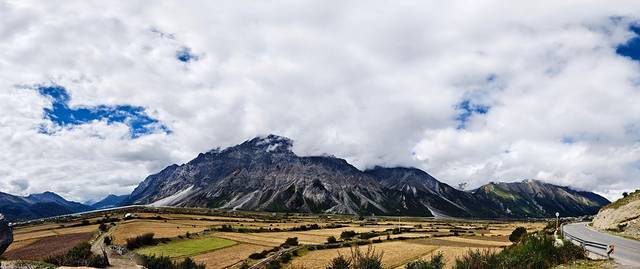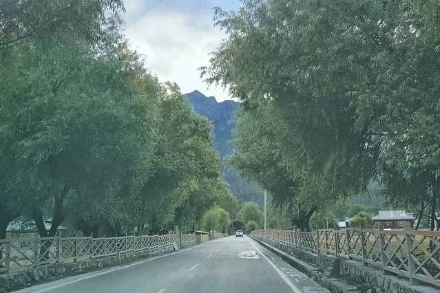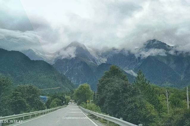 每天行走的风景都不一样,这里山势平缓,一段长长的路直通雪山。