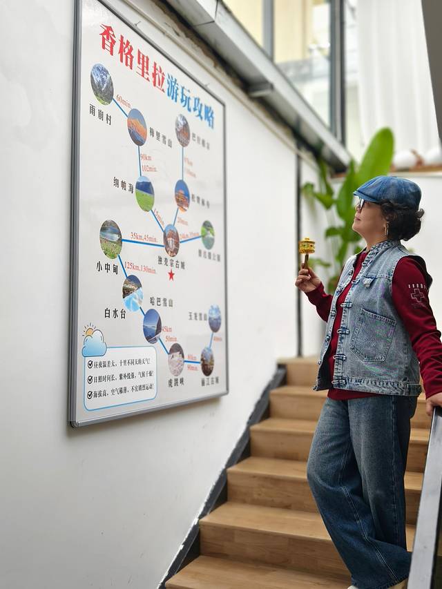 按照当地习俗,我们需顺时针转动转经筒三圈,以祈求家人平安幸福。