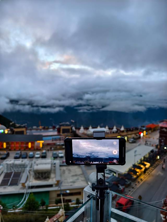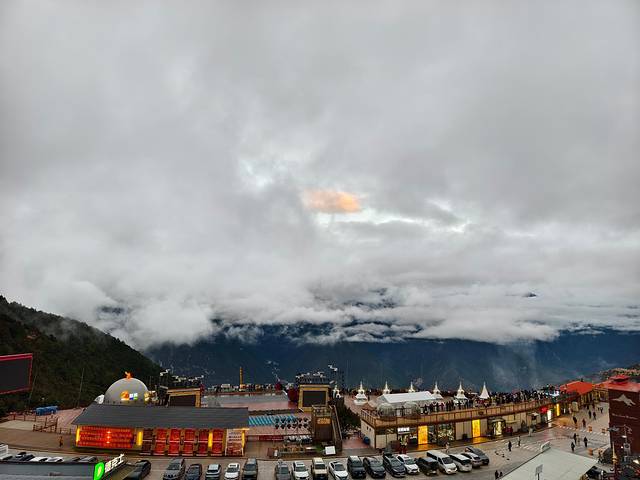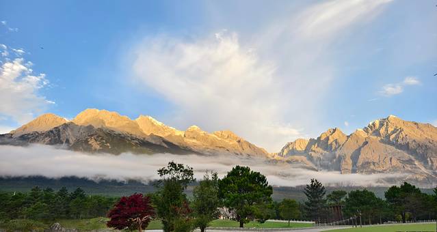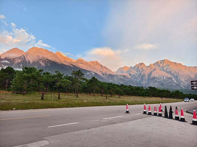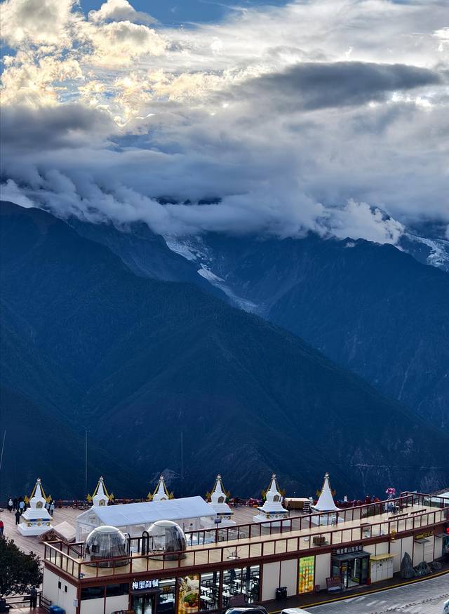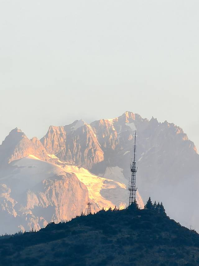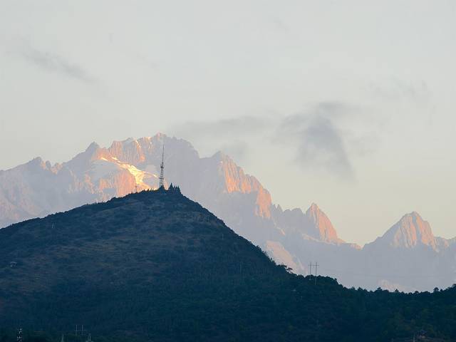 今天出发前往香格里拉,早上在民宿房顶的观景台看到了日照金山。
