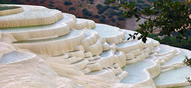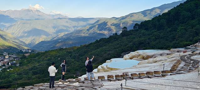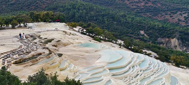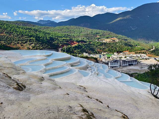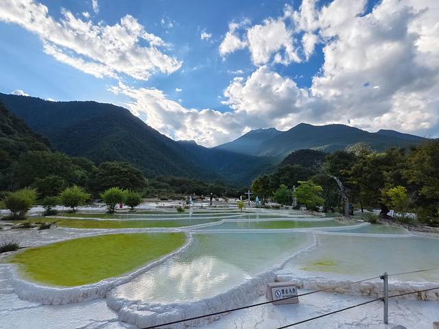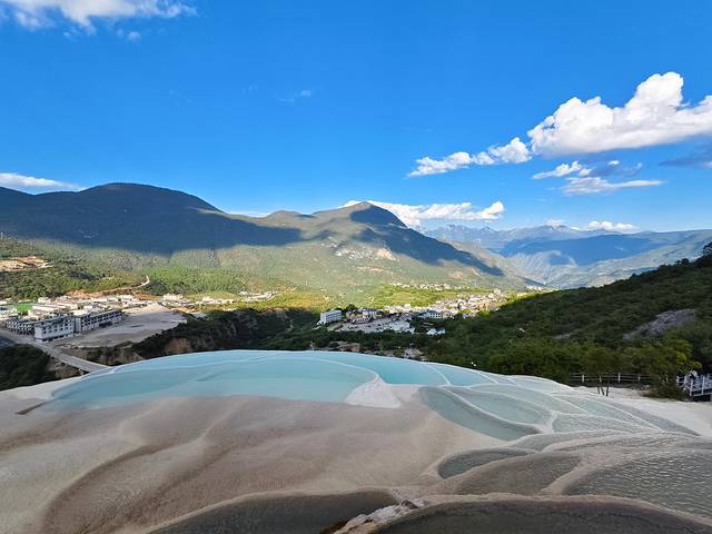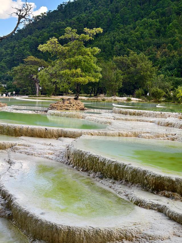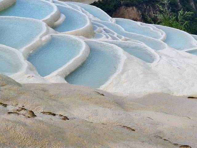 水中富含的矿物质,在阳光的魔法下呈现一种温润的色泽。