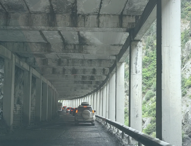 好几辆车都从岔道口掉头回来了,我们也选择了隧道。7公里的路程我们轻松通过。