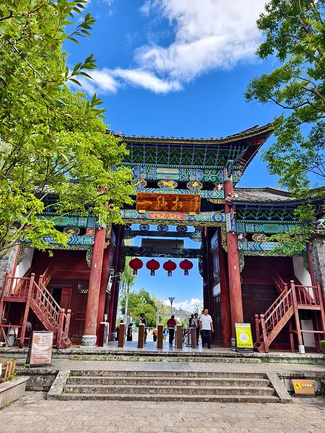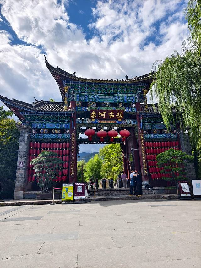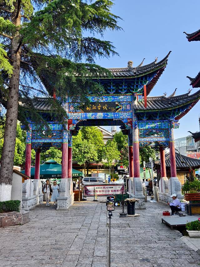 驱车前行,不过数里,便可见一座石牌坊,上书“束河古镇”四字。下午人不多,我们到的时间点刚刚好。