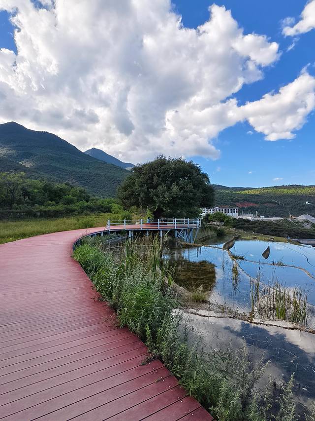 沿353国道,途经拉市海湿地公园。