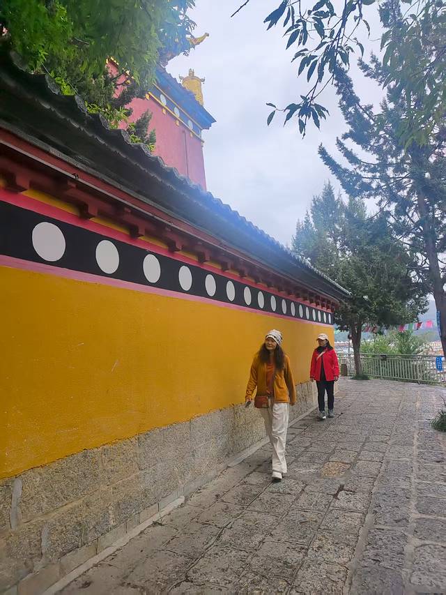 寺庙依山而建,层层叠叠,金顶红墙,气势恢宏。