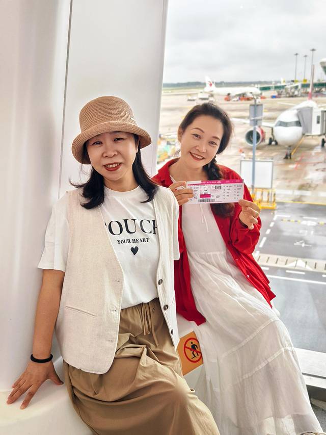 在机场和老妹碰头,好久没坐飞机了,期待的同时还有点小紧张。