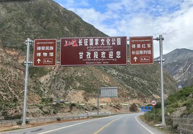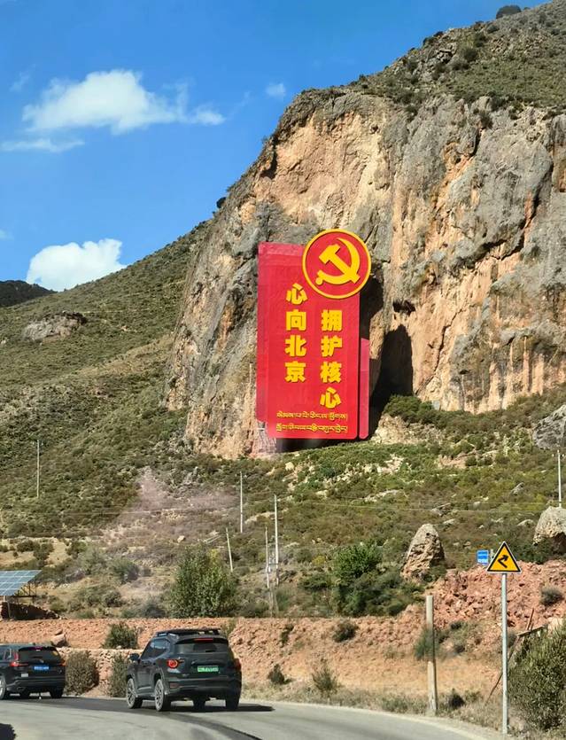 一路风尘仆仆,要不是这点缀谷中的红色标牌,你定会觉得走进了蛮荒之地。