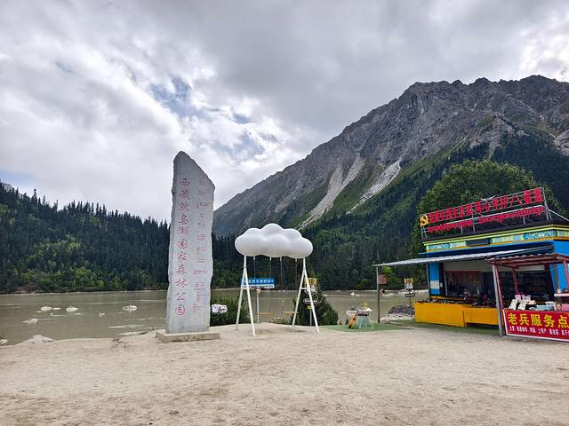 继续沿318国道前行,到达“然乌湖国家森林公园”一个石碑的地方。