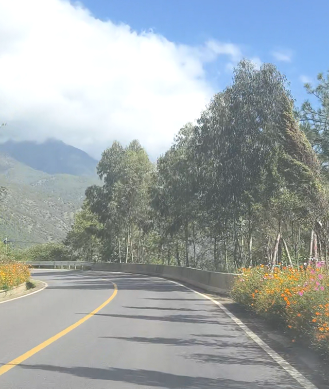 沿金沙江一路前行,一边是流动的江水,一边是绚丽的花草,我们的车速也缓慢了下来。