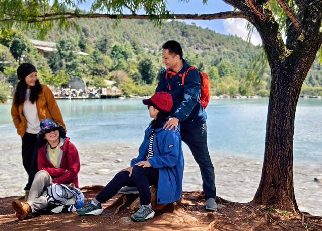 避开人流,我们走到了湖的对岸。