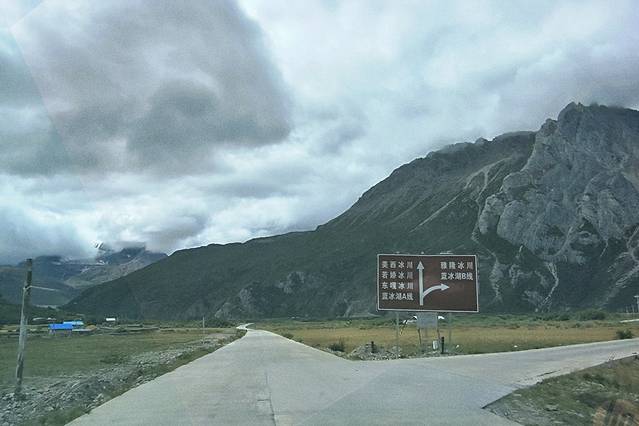 这段路应该时原来景区交通车行驶的路线。这里右转可以去到雅龙冰川,尹同志跃跃欲试,来回5个多小时的车程让我们否决了。