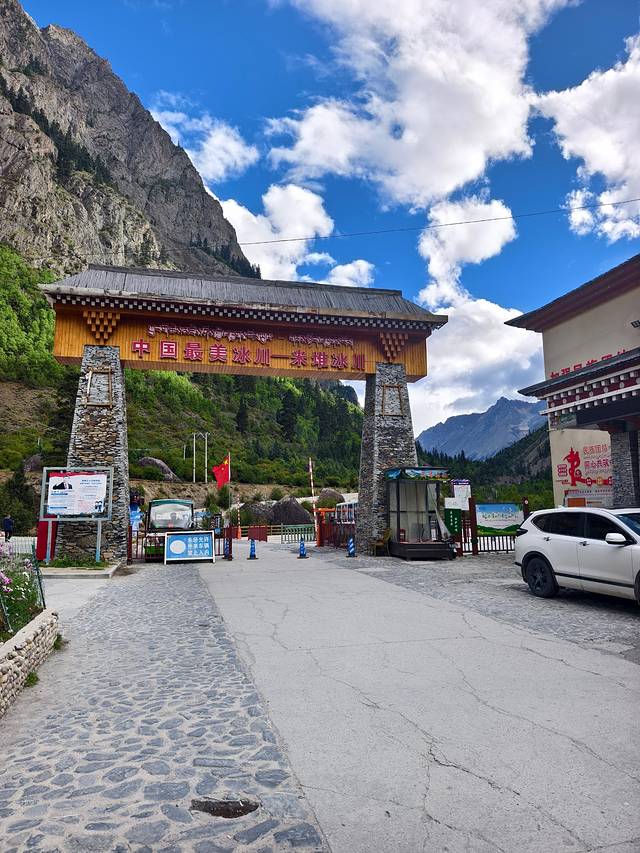 进入来古冰川游客服务中心的这条路上,两边的商铺全都关门闭户。