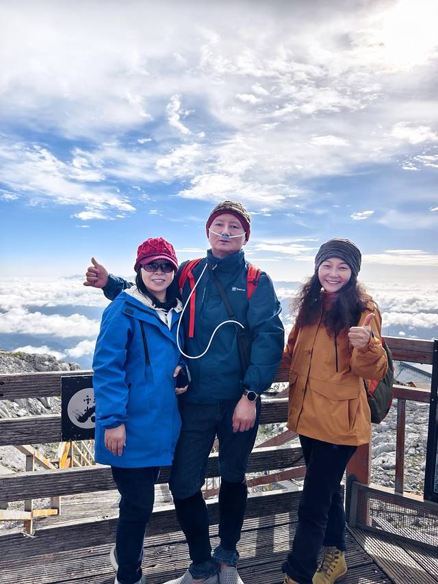 很多人在索道上就要开始吸氧了,我们感觉还好。