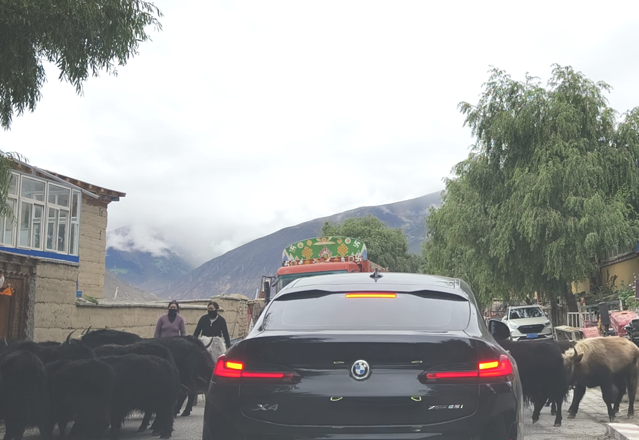 路过村庄,车永远是给牛让路的。