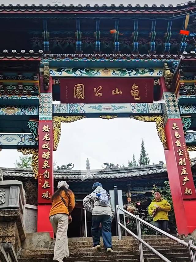 进入石门是下行陡坡台阶,走过一条不长的木栈道,就到了丽江唯一的汉传佛教寺院——石觉寺。