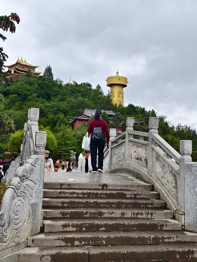 沿着石阶继续向下,这里有标志性的白塔——洁白圣洁,是藏传佛教的缩影。