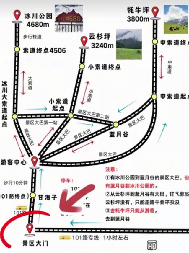 冰川公园索道下山,换乘点的车直接可以到蓝月谷。
