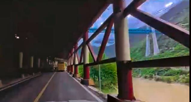 215国道沿江边修建,一侧是悬崖峭壁,一侧是沿江陡坡。