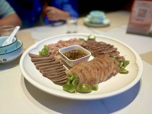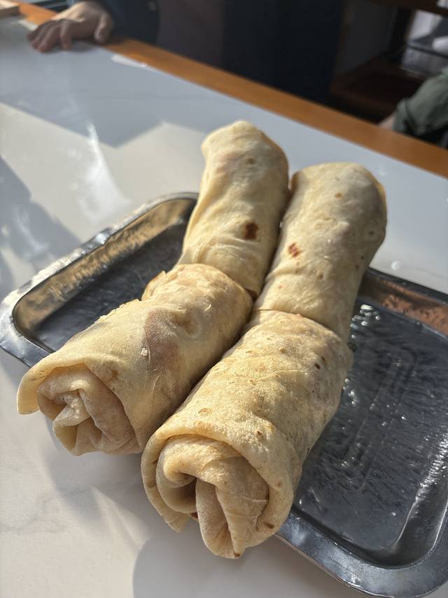点了一个熏菜,一个卤肉,才发现熏菜并不是素的,也是肉哎,真是开眼了。卷饼和鸡蛋汤下肚,填饱肚子赶路。