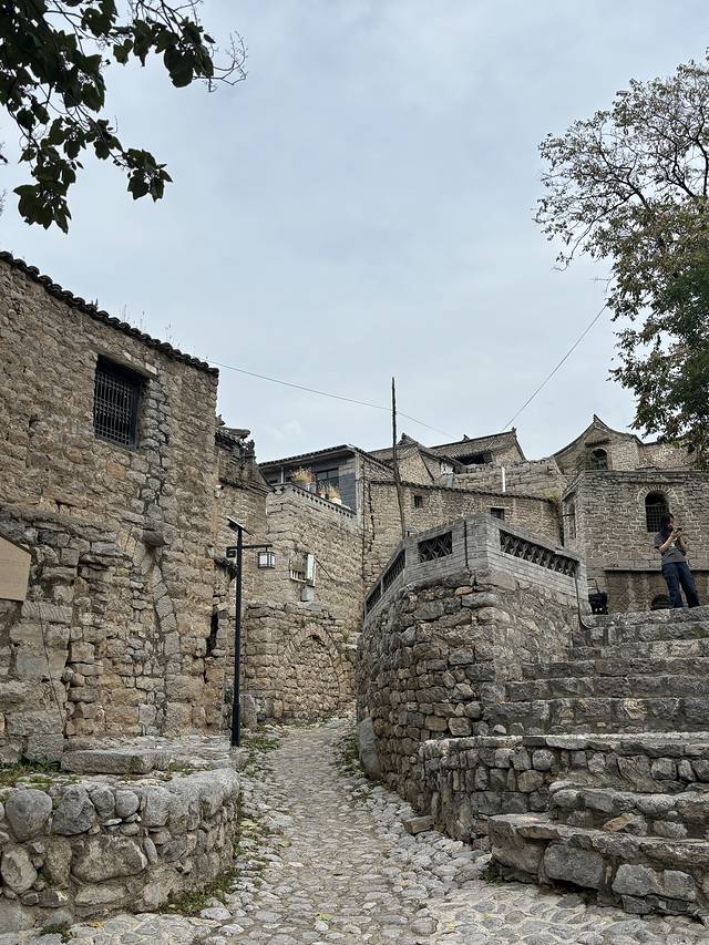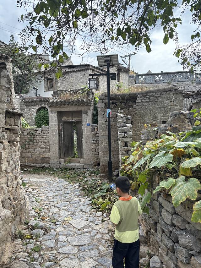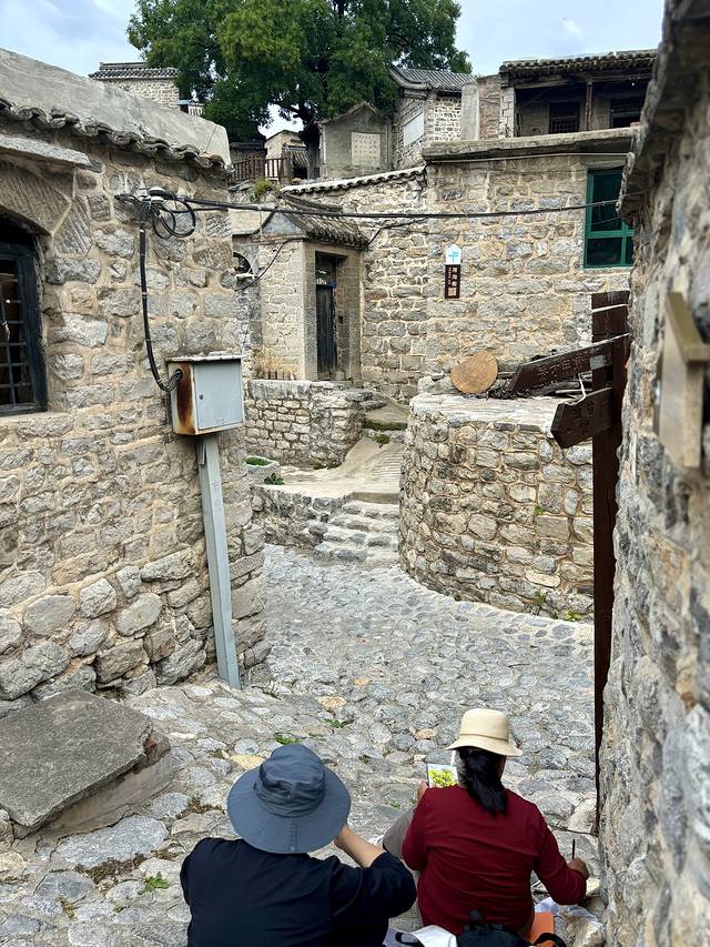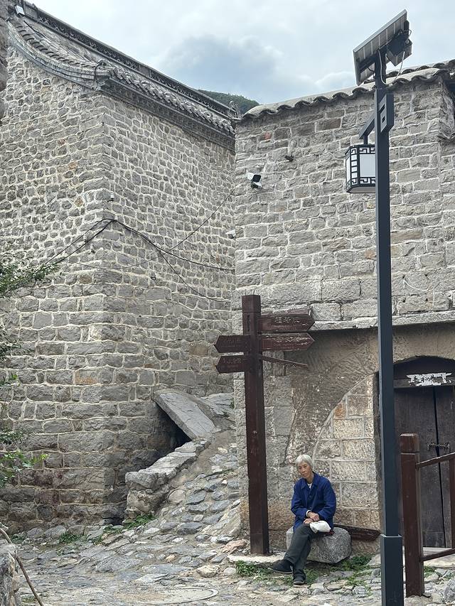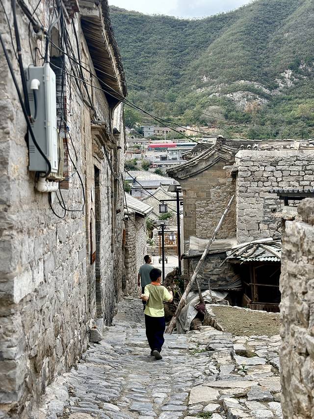 这是一座石头村,明清时期的建筑,有老人坐在门前聊天,晒太阳。生活气息浓厚