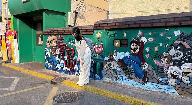 青岛的地铁站是真的好看,网红墙不远处便是地铁站。