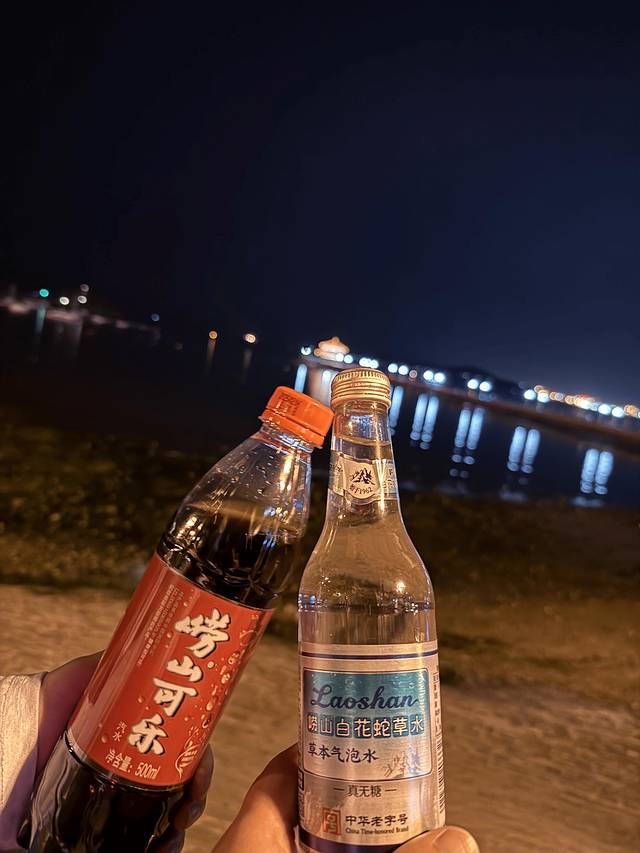从步行街出来后再坐公交车回栈桥边的酒店,以崂山可乐和蛇草水作为今日收官。
