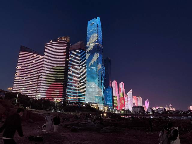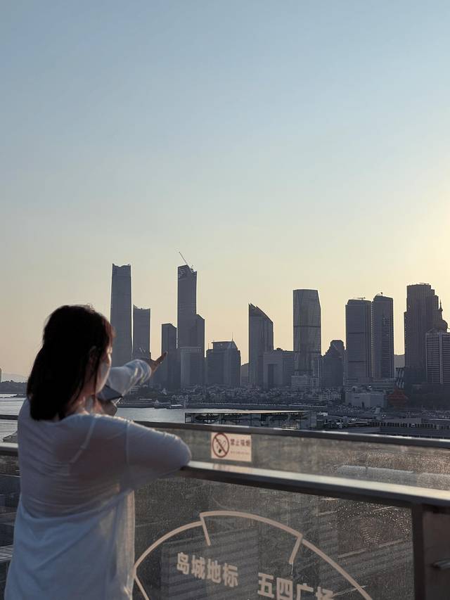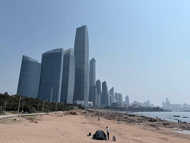沿第三浴场海边走便到五四广场、摩天大楼群。