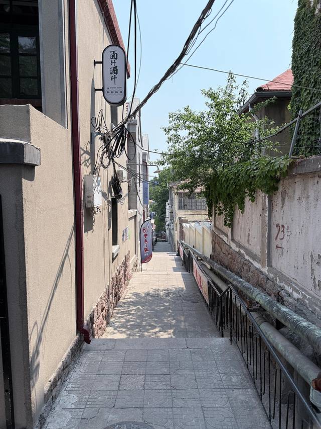从信号山下来后,沿路走到波螺油子艺术谷(目的地是青岛啤酒博物馆),是一些“主理人”店,最里面有个花园,很多人打卡,小洋楼里有咖啡可以喝,可以坐短暂停留。