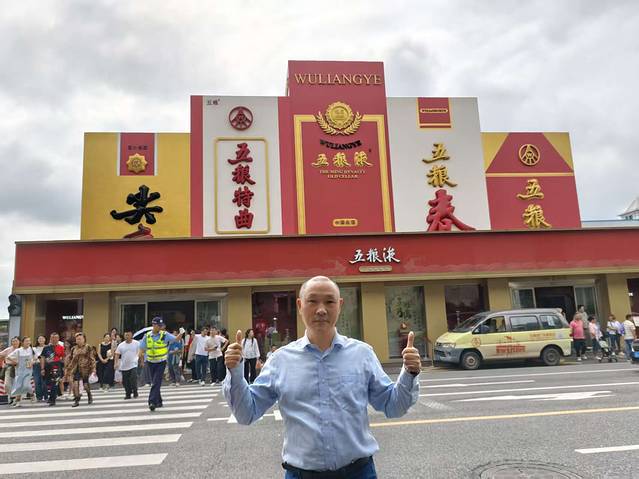 我们心里没底:国庆博览馆开不开?没预约能不能进?先把车停在馆外,对着五粮液商标的鎏金雕塑、印着品牌标识的大楼拍了打卡照,像给这段 “酒香之旅” 先盖了个戳。抱着试试看的心态跟着车流往里走,保安小哥笑着指引停车:“参观从这边进,不用预约。” 心里的石头一下子落了地。
