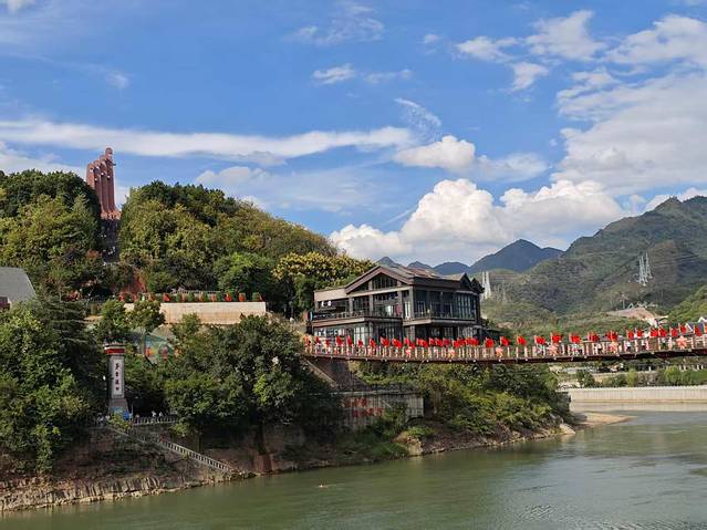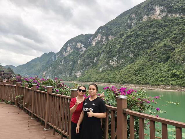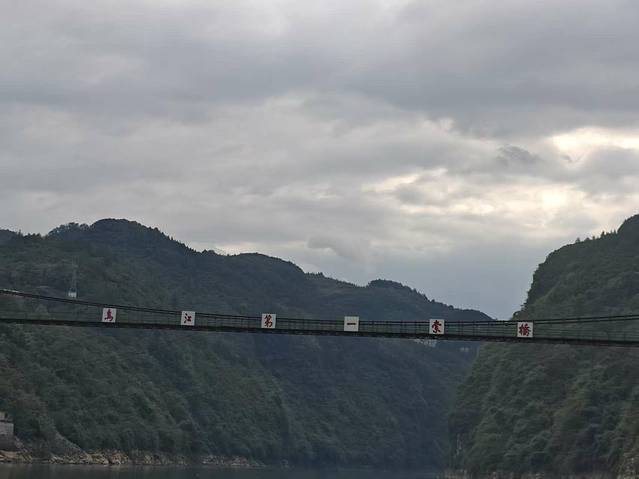 江上的铁索桥像根细银线,横拉在两山之间;沿江的高速桥则粗实,裹着钢混的重,一轻一重,倒像自然与人文在对话。江风裹着水草的清,拂在脸上,满船的人要么静望着,要么低声叹,快门声轻得像怕惊着山水。岳母跟邻座的阿姨聊得投缘,指着远处的山说:“这水比宜昌的清江还软,这趟没白来!”