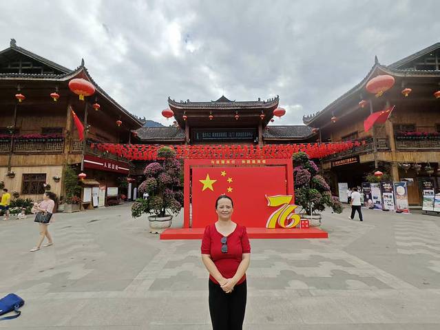 不知不觉逛了一个多小时,往回走时,在谷口的红紫色岩石美女雕塑前拍了合影。坐电梯、乘摆渡车出景区时,妻子意犹未尽:“明后年国庆,咱们去黄果树瀑布看看,对比下两种瀑布的美,肯定有意思!”