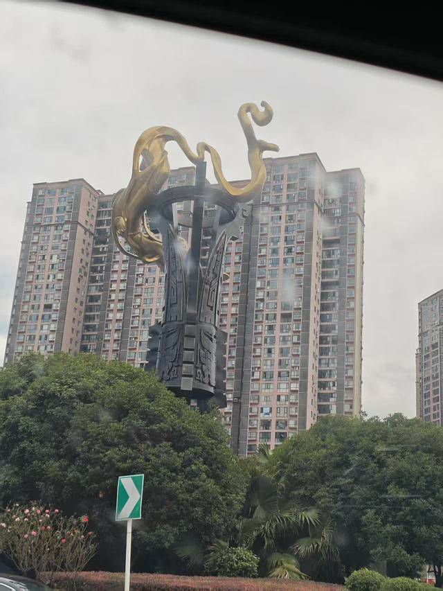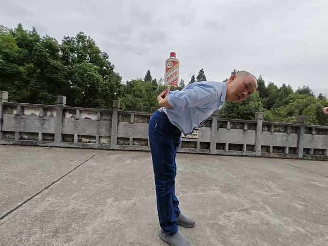 进了广场,满眼都是 “酒元素”:道路两旁立着不同年代的五粮液酒瓶雕塑,从早期的玻璃瓶到现在的礼盒装,每一款都带着时代的印 —— 有的瓶身沾着岁月的黄,有的印着复古的纹,我们挨个拍照,看品牌的变迁,像读一本浸着酒香的书;广场中央是组市民休闲的雕塑,我们学着雕塑的模样打卡,惹得岳母笑个不停;最有意思的是建筑物顶的酒瓶造型,远看像摆着几瓶五粮液,我一时兴起,对着镜头比了套划拳手势,“哥俩好、六六六” 的口诀一出口,路过的游客也跟着笑,笑声裹着酒香,格外热闹。