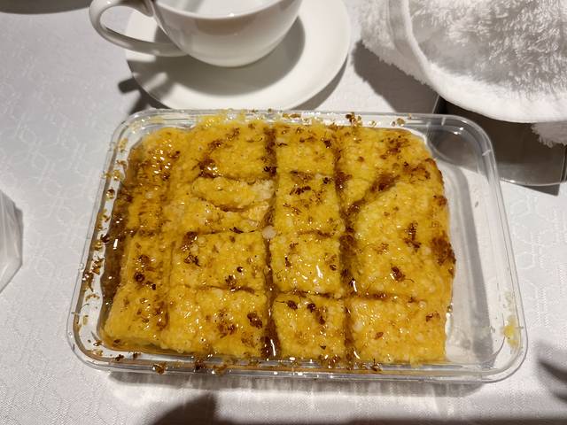 小奶酪要吃特色的黄米凉糕,弘雅饭店没有,在隔壁的北魏家宴饭馆打包一份。
