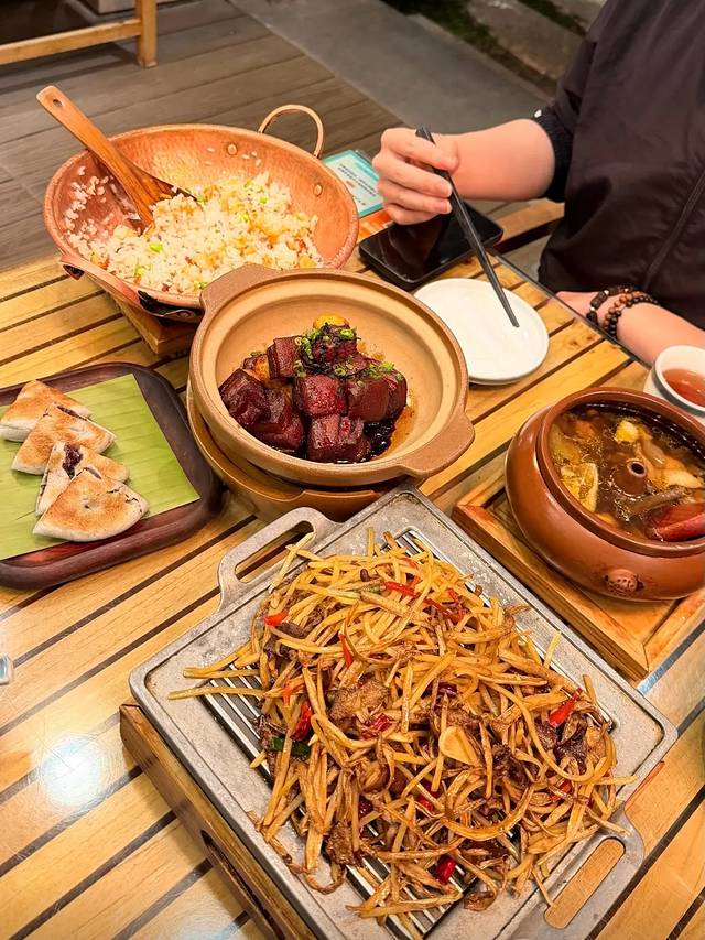 我太喜欢束河古镇这家美食了,店家服务态度非常好!还送了果酒,让我们先去品尝然后选口味,很推荐红烧肉,汽锅鸡,土豆丝炒茶树菇和小锅饭!