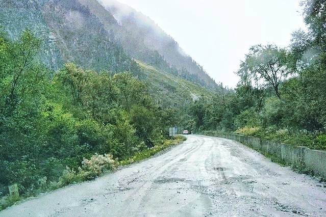 坑坑洼洼的路面让人无暇欣赏周围的景色。