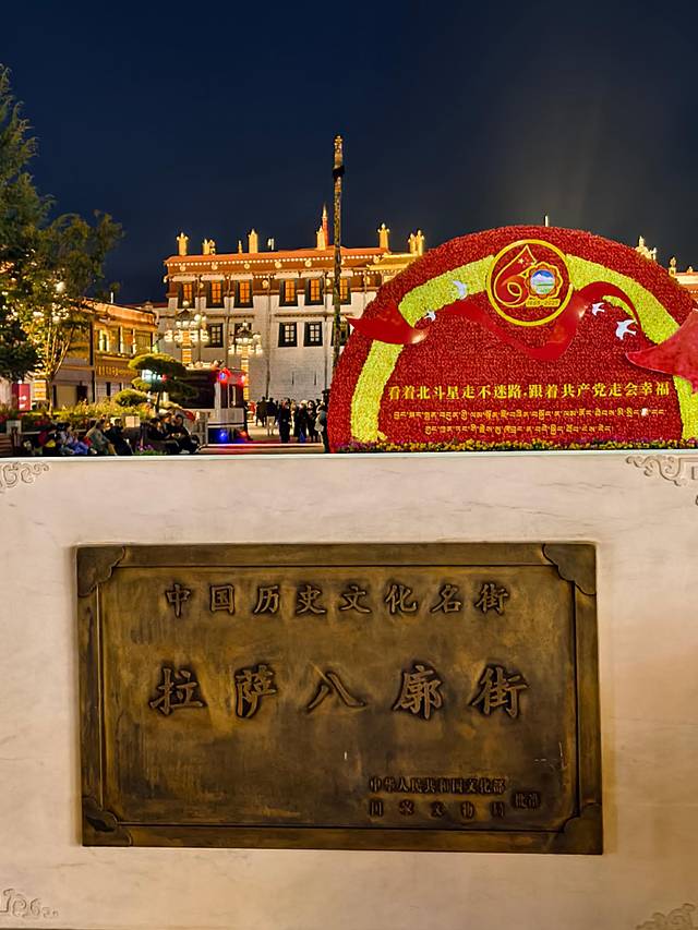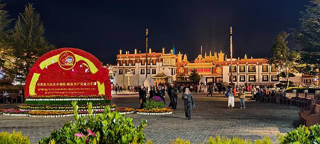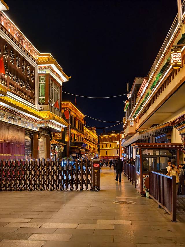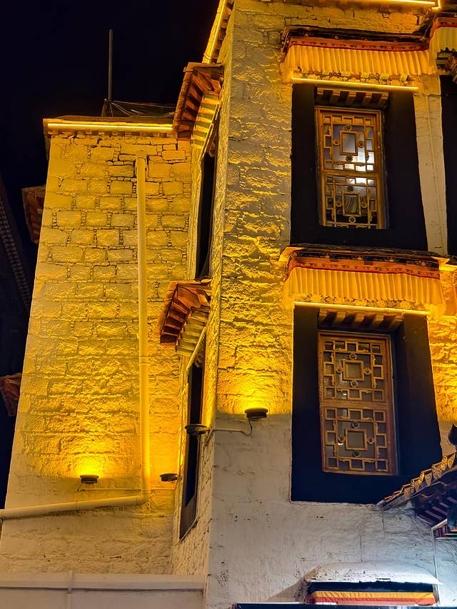入口的大昭寺被专业的灯光打亮,通体流淌着一种”温暖而恢弘的金色“。