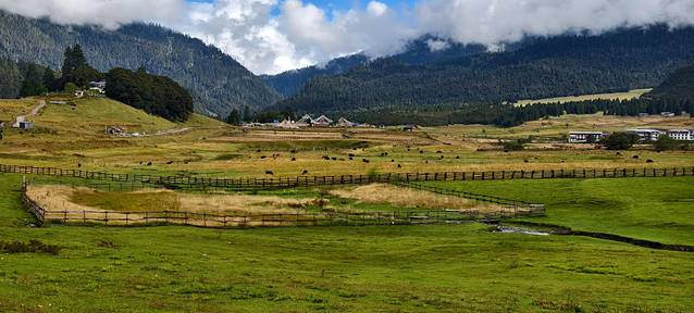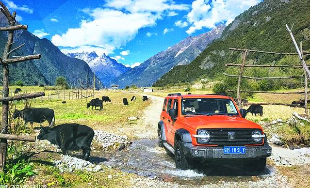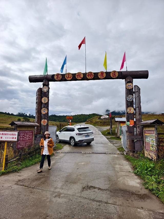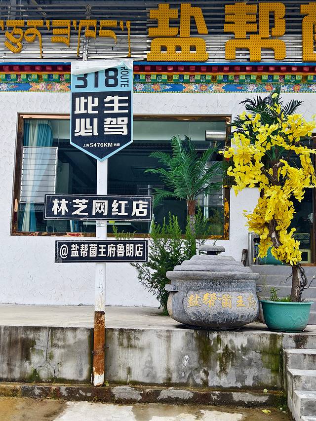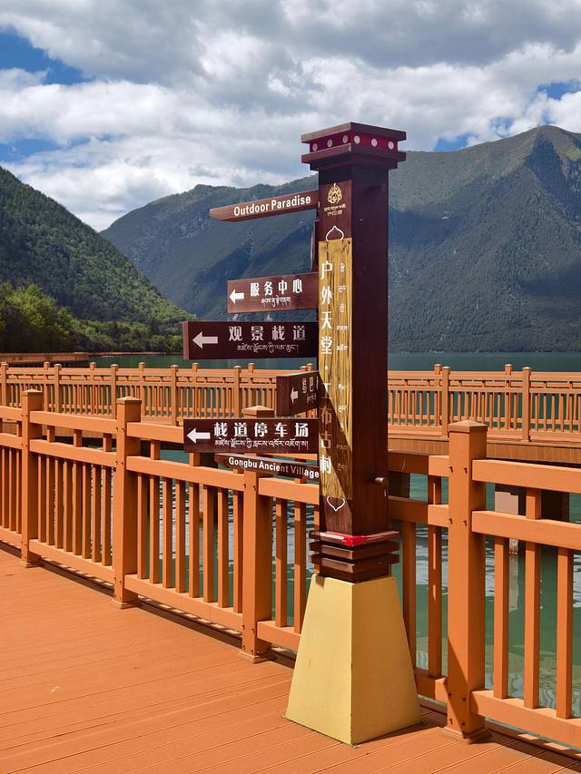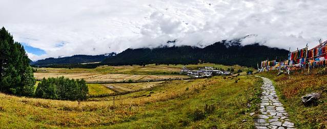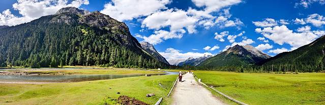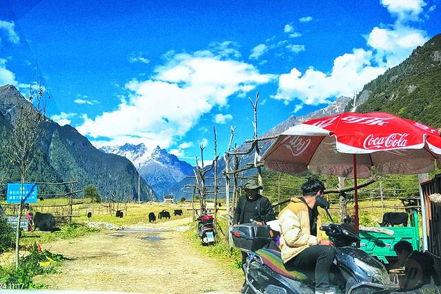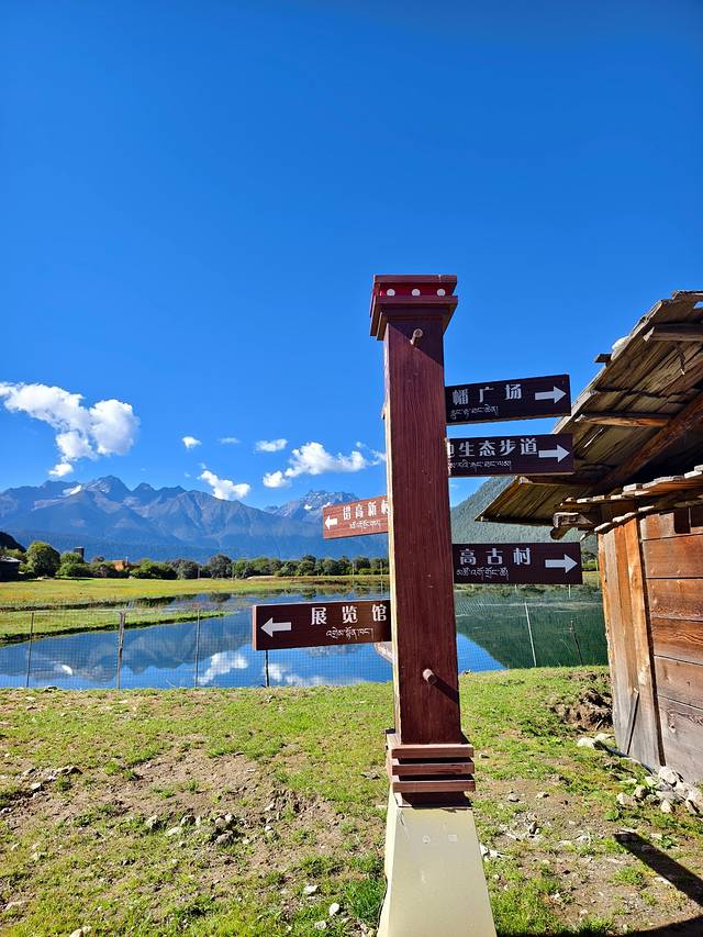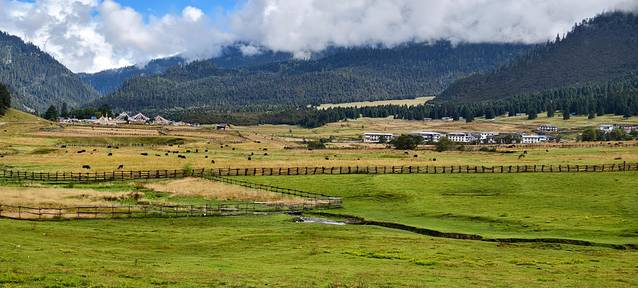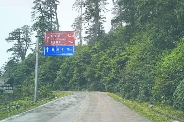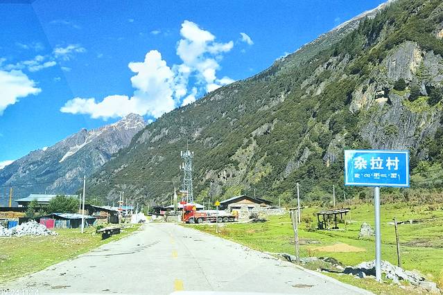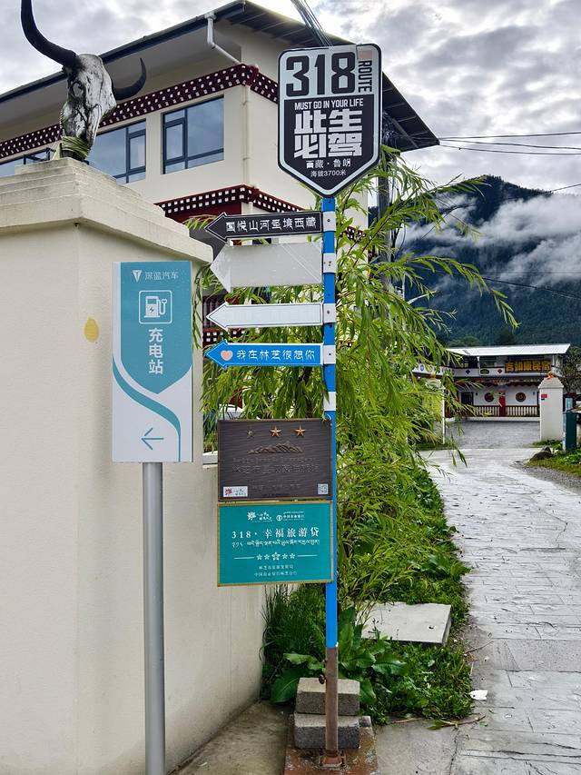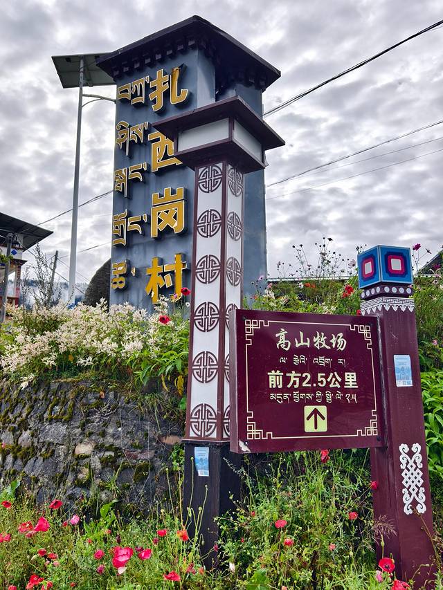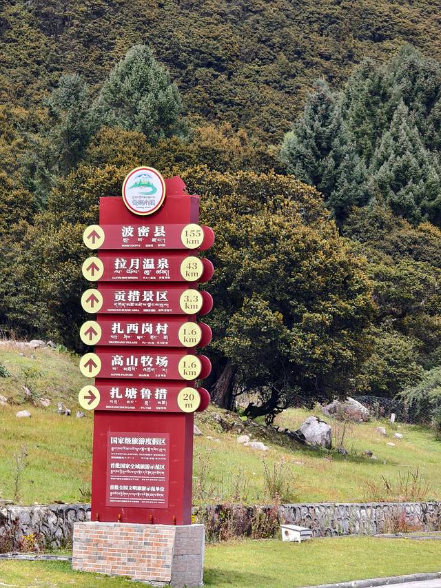 今天的落脚点是扎西岗村,鲁朗旁边的一个小村庄。在这个高山牧场的黄色指示牌左转。
