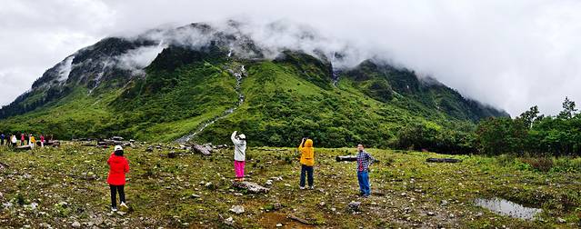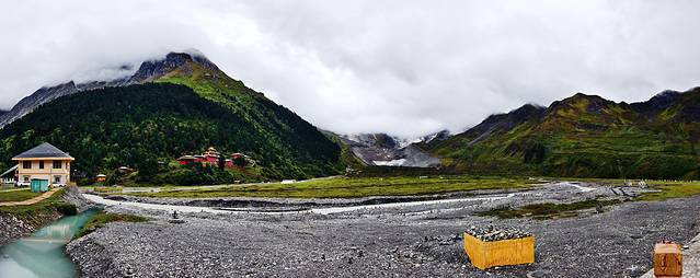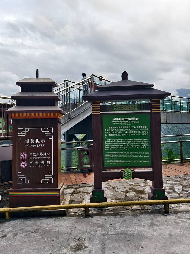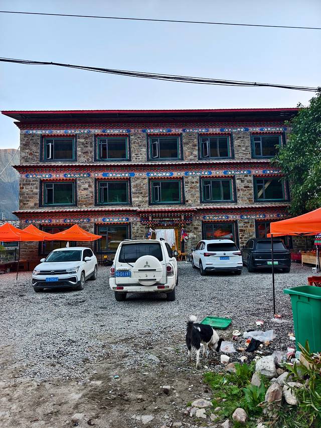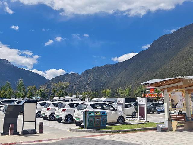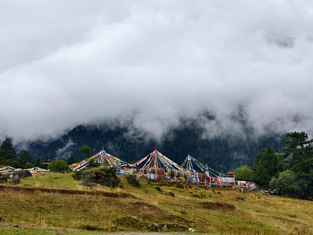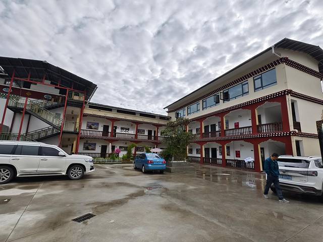 半个小时后,我们到达嘎瓦龙游客接待中心。因天气不好,没有多少车停下来,明天回来再停车观赏吧。