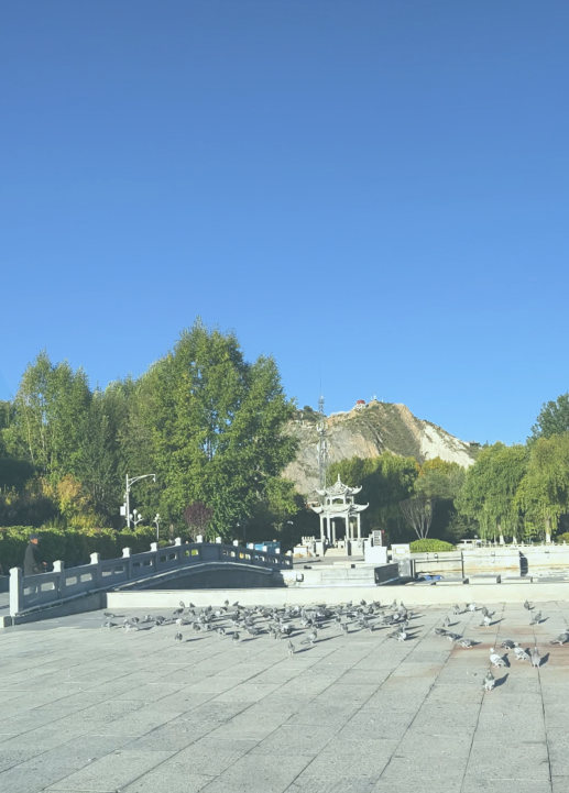 其实我们的酒店就在广场旁边,从酒店停车场出门穿过马路就是布达拉宫广场,药王山就在布达拉宫广场的西侧。