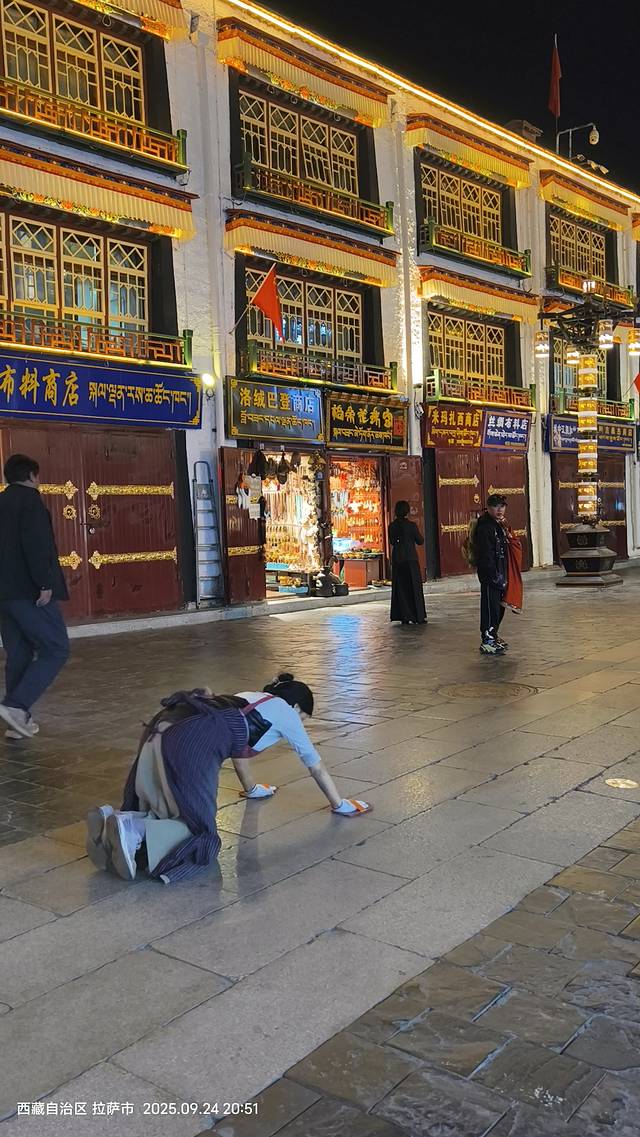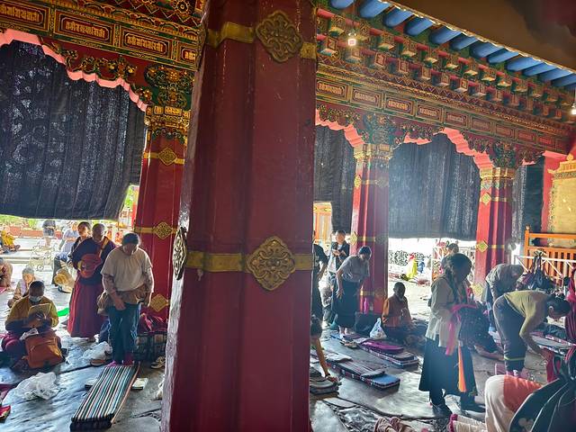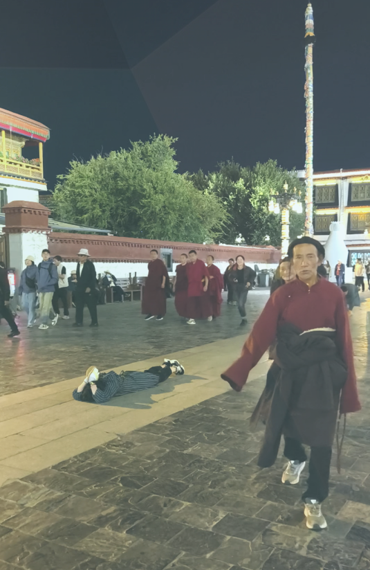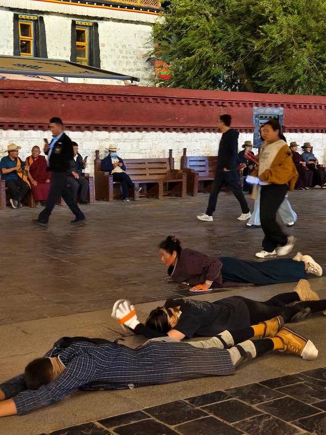 门口磕长头信徒的每一次"合十"、"下蹲"、"俯身"、"划地起身"都是他们用最虔诚的身体语言,表达对佛祖的最深敬意和祈愿!