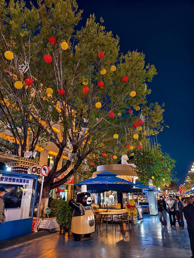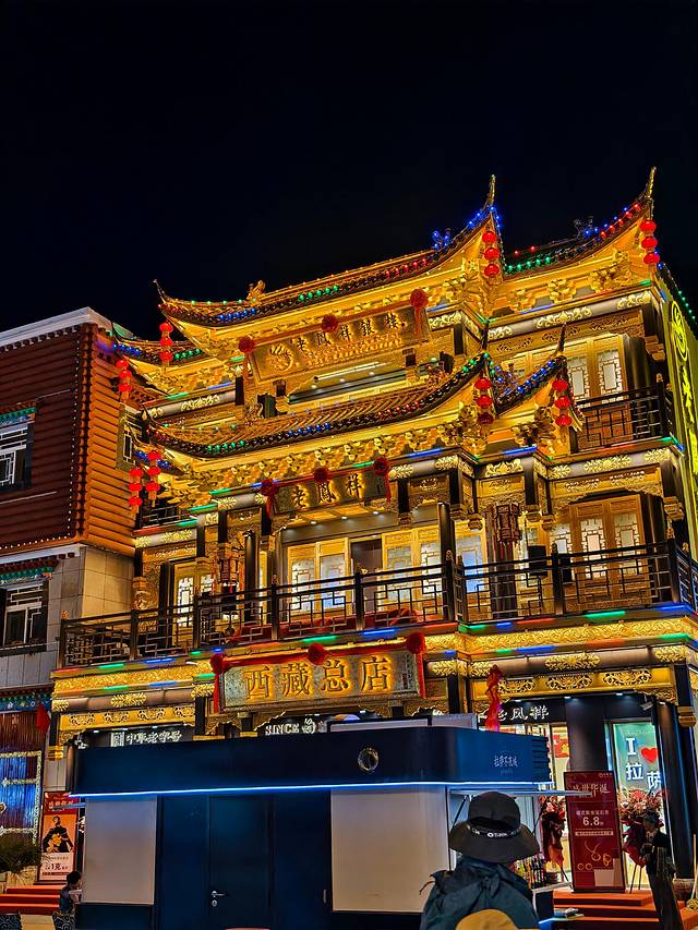 藏式灯笼和LED灯光带将整条街道装点得宛如银河落地。