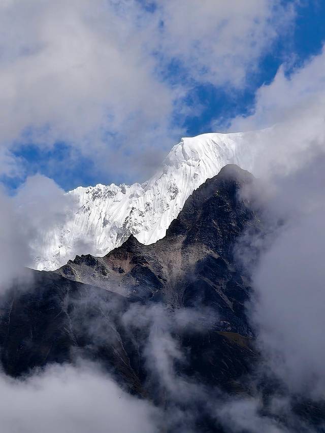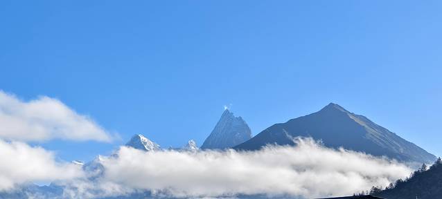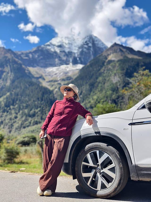 观景台的正对面是海拔5590米的卡木雪山。