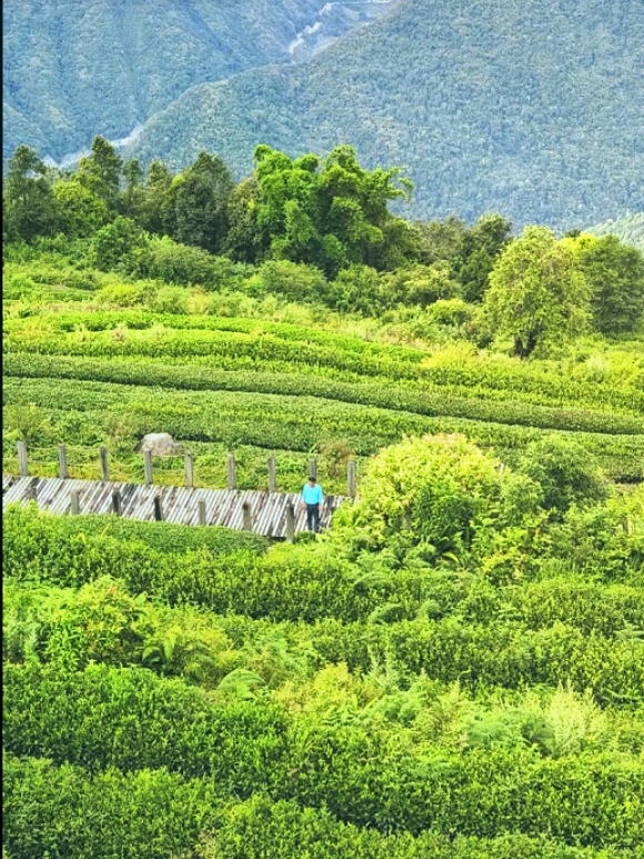远方峡谷对岸的原始森林,乃至天际处的南迦巴瓦雪顶,都因为这茶场显得不在那么遥远。