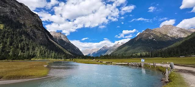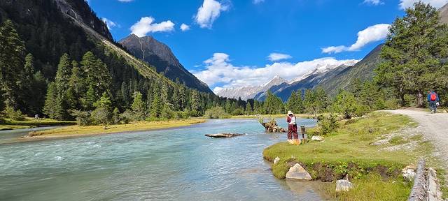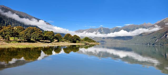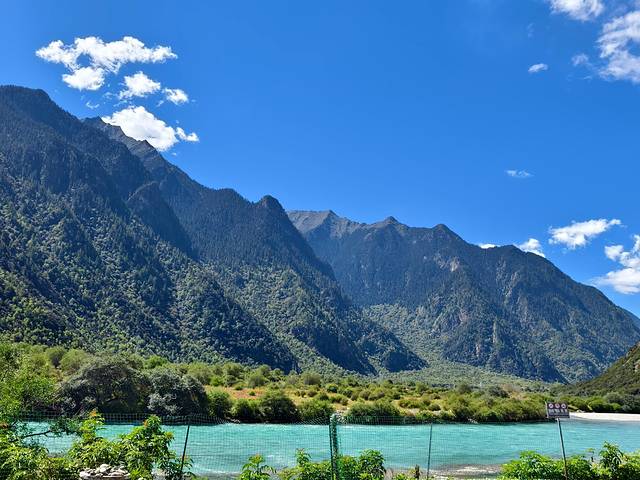 尼洋河水清澈碧绿,随着地势蜿蜒。