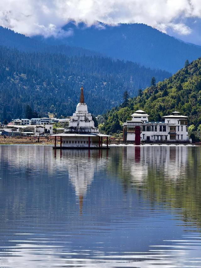 都说巴松措的湖心岛是这片高原湖泊的灵魂所在,它像一枚被碧水托起的翡翠印章。