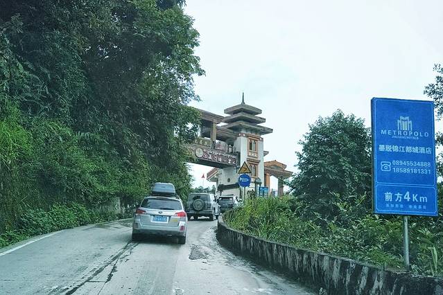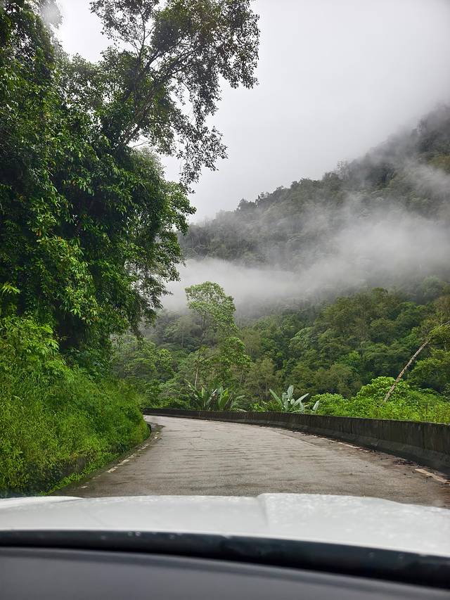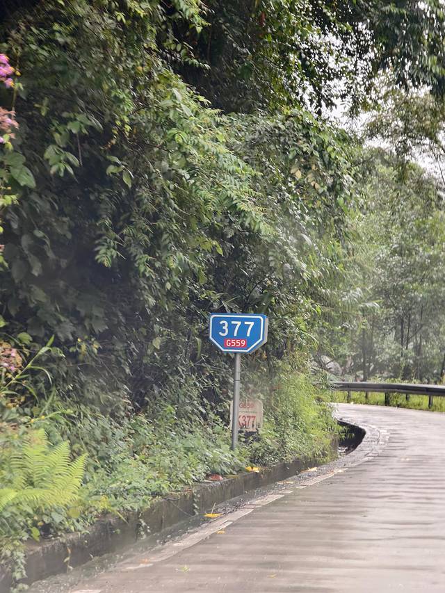 一路上的车不多,雨后的地面满是积水,连续的上坡我们慢慢开。