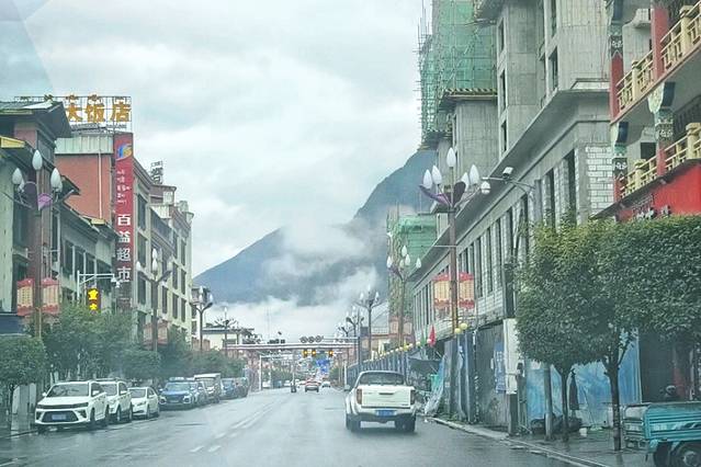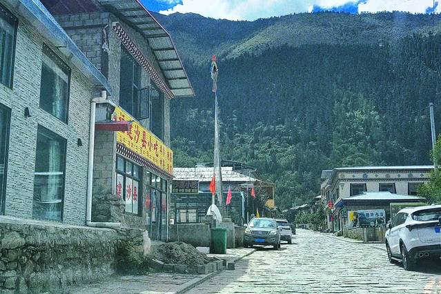 因为墨脱执行的是“双进单出”,所以街道两旁停靠的车辆比昨天少了很多。