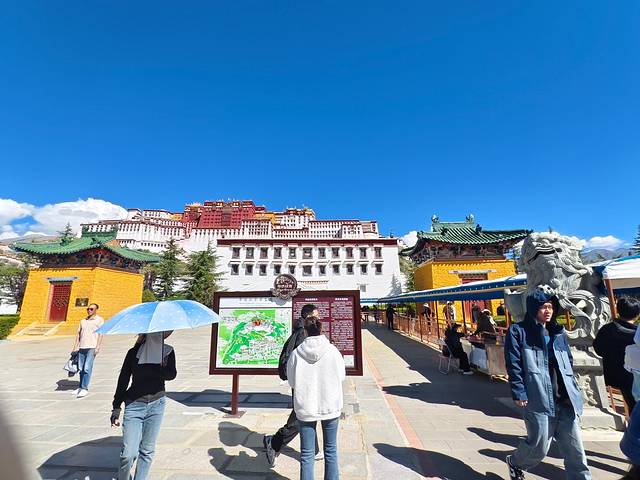 网约车把我们放在了北门,这里是布达拉宫的出口。门口很多拉客的导游,进布达拉宫还是需要讲解,我们也找了一个执证导游。