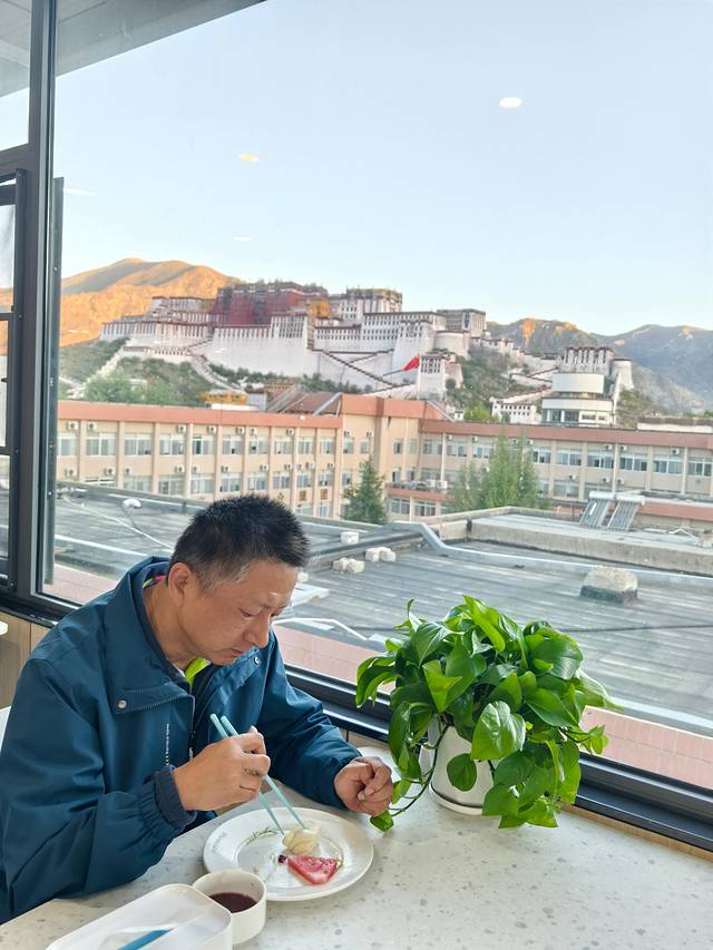 透过酒店餐厅的窗户可以看到不远处的布达拉宫。