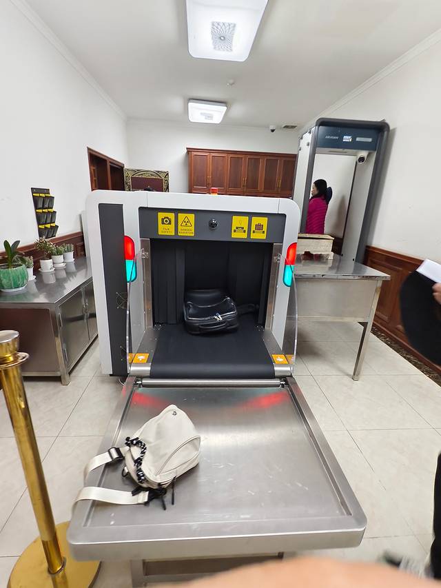 走过安检通道。